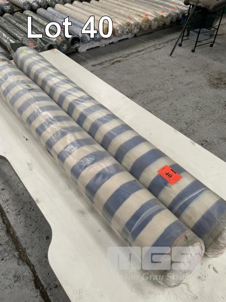 2 x ROLLS TEXTILENE FABRIC, BLUE/WHITE SLING STRIPE, 1.5 x 25m APPROX