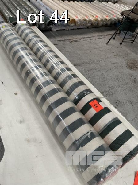 2 x ROLLS TEXTILENE FABRIC, GREEN/WHITE SLING STRIPE, 1.5 x 25m APPROX
