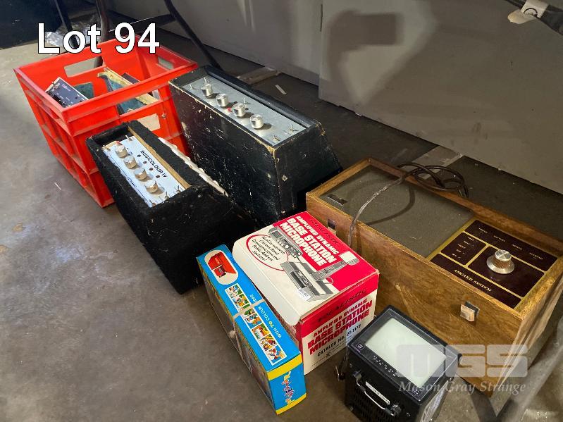 ASST REALISTIC AMPLIFIER DYNAMIC BASE STATION MICROPHONE, AMGARD SYSTEM ALARM OONTROL UNIT, ALTRONIC MUSICOLOUR IV CONTROLLERS, DISCOLIGHT CONTROLLER ETC