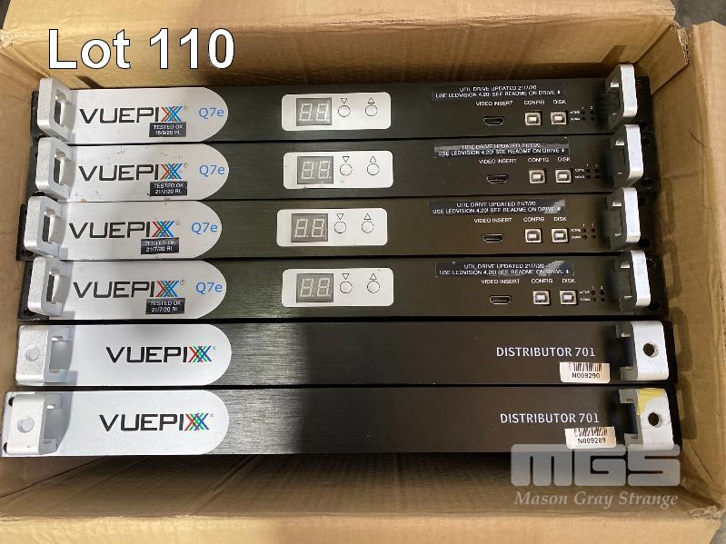 150 x VUEPIX E SERIES MESH DISPLAY LED PANELS, MODEL VP-ICE-P12-6960, EACH 800 x 385mm WITH 8 x MOBILE ROAD CASES & CABLES, 10 x FLYBARS IN 2 x MOBILE ROAD CASES, 2 x VUEPIX T7e SENDER UNITS, 1 x COLORLIGHT LED iQ7 HD SENDER, 2 x DATA TRANSMISSION UNITS, 2 x VUEPIX DISTRIBUTOR 701, 4 x VUEPIX Q7e SENDER UNITS