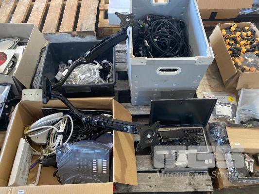 1 x PALLET ASST CABLES, DELL D620 LAPTOP, DUAL MONITOR BRACKET, ALCATEL PHONES, KVM SWITCH ETC