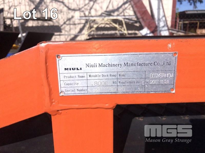 LOADING RAMP, NIULU DOM: 2017 8,000kg CAPACITY 1,950mm INTERNAL CLEARANCE MOBILE ADJUSTABLE STAND LEGS