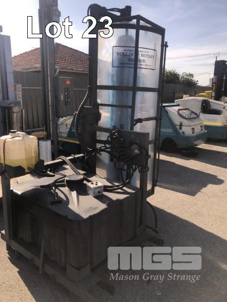 BULLDOG ROTARY WASHER, INDUSTRIAL BRUSHWARE CO FORKLIFT MOUNT WITH CONTROL HYDRAULIC DRIVE POLY TANK, 400 LITRE APPROX WITH SUDS ADD PROVISION 2m ROTARY BRUSH WITH SEE THROUGH GUARD