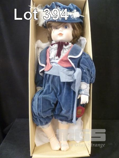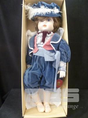 ROMANE CERAMIC LITTLE BOY BLUE DOLL, BLUE OUTFIT WITH HAT, 64cm (H) IN ORIGINAL BOX