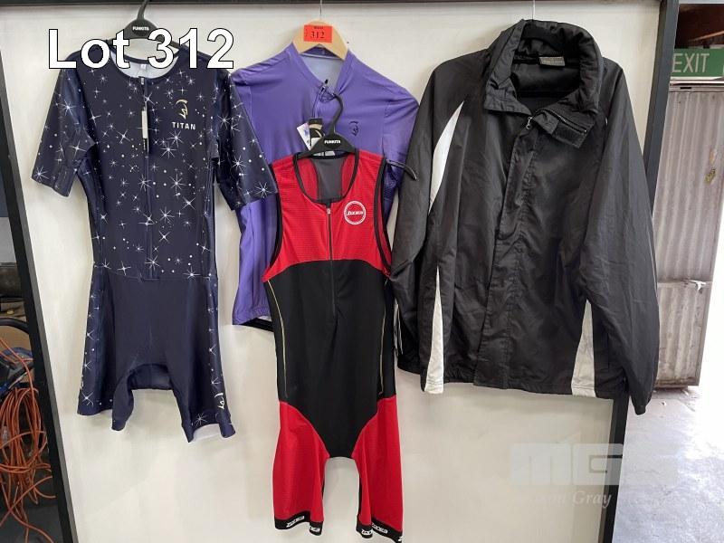 4 x ASSORTED ITEMS INC TRI SUITS, JERSEYS & JACKET, S