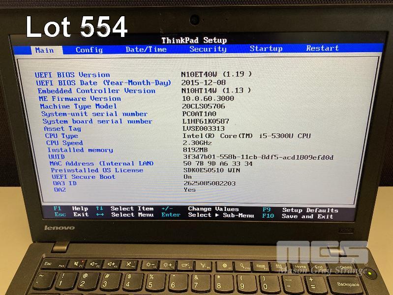 LAPTOP, LENOVO THINKPAD X250 (20CLS05706), CORE i5 5300U (5TH GEN) @ 2.3GHz, 8GB DDR3 RAM, 500GB SATA HDD, 12.5" WIDESCREEN (1366x768), INTEL HD VIDEO, Wi-Fi, BLUETOOTH, WINDOWS 10 PRO INSTALLED & POWER SUPPLY S/N:PC0AT1A0
