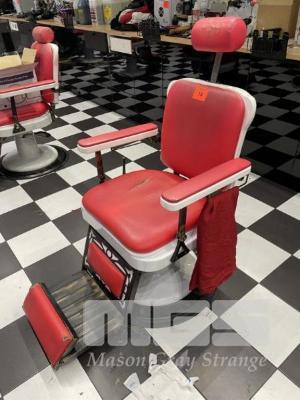 BARBERS CHAIR, MANUAL HYDRAULIC, RED & WHITE