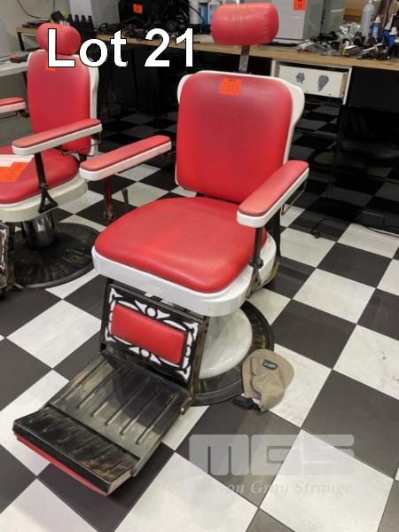 BARBERS CHAIR, MANUAL HYDRAULIC, RED & WHITE