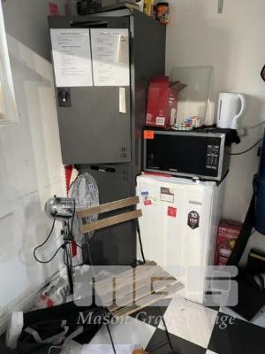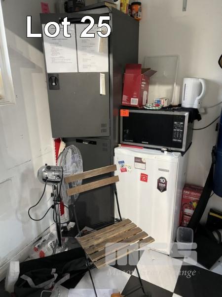 KITCHEN KIT, BAR FRIDGE, SAMSUNG 1000w MICROWAVE, FAN, 2 DOOR LOCKER, KETTLE & CHAIR