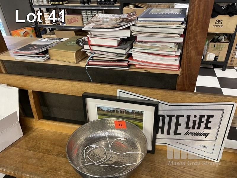ASSORTED MOTORING BOOKS, MAGAZINES, PIRATE LIFE SIGN, BIBLE