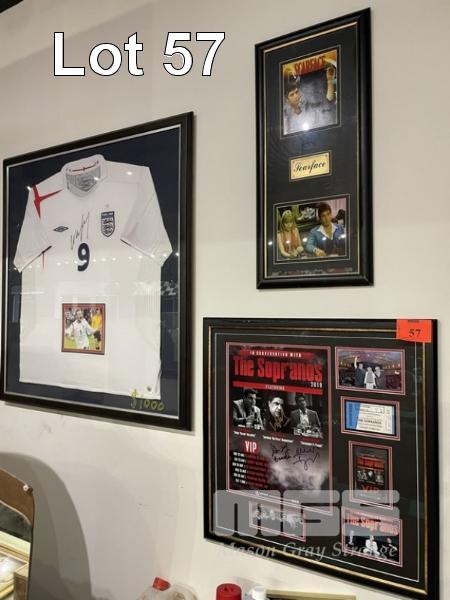 ENGLISH SOCCER GUERNSEY, "9" WAYNE ROONEY SIGNED, 2 x SCARFACE & SOPRANOS COLLECTABLE PRINTS