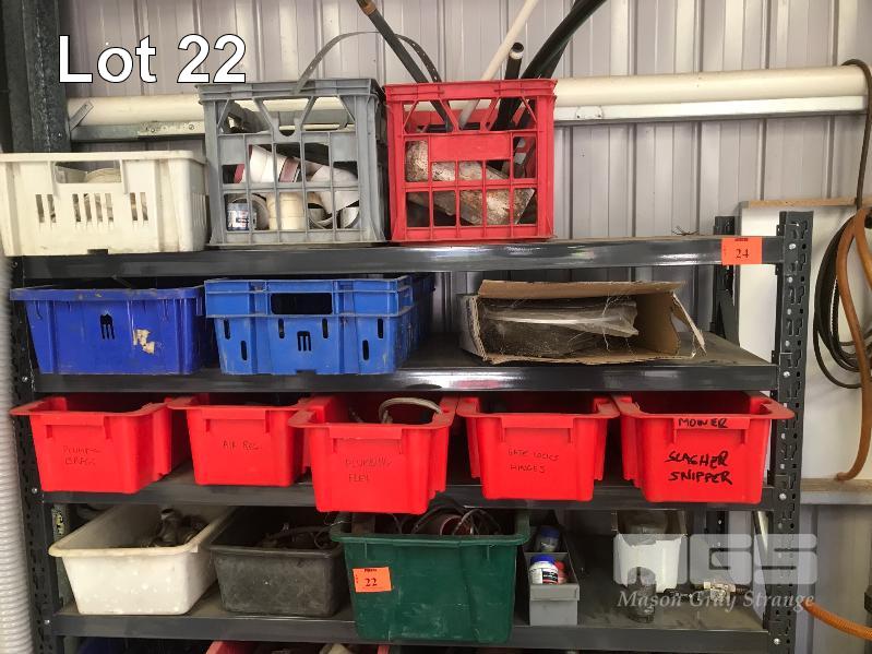 ASSORTED PLUMBING COMPONENTS, PVC FITTINGS, STEEL IRRIGATION FITTING & VALVES, ETC, 4 x SHELVES