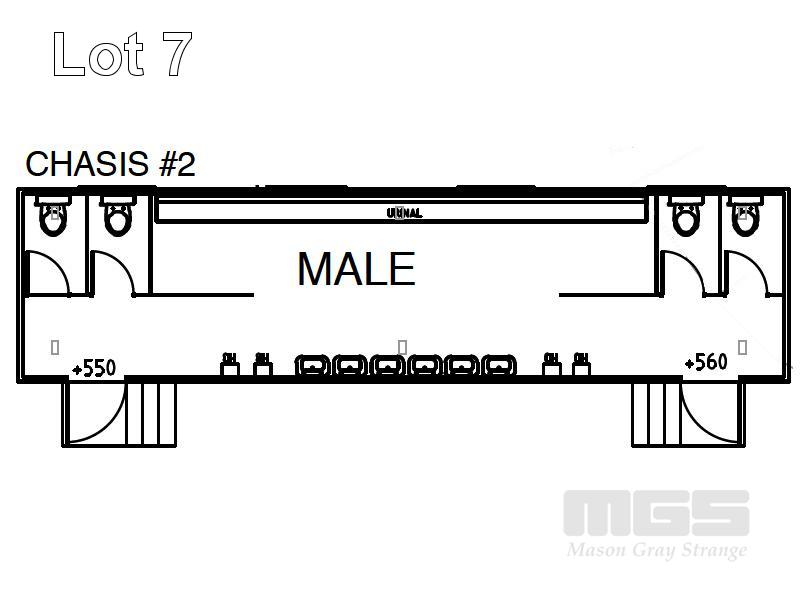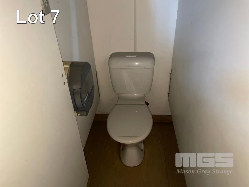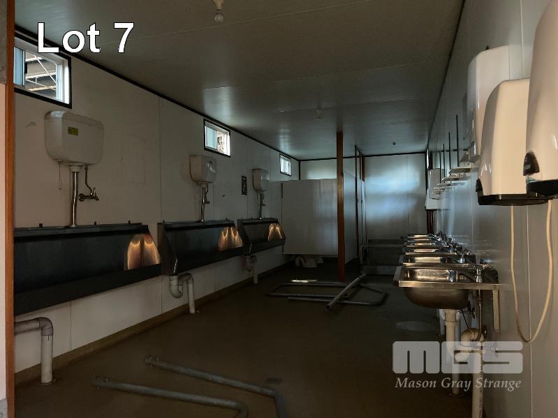 ABLUTION BLOCK 2: TRANSPORTABLE ABLUTION BLOCK 12 x 3m (MALE) 2 x ACCESS DOORS, 4 x CUBICLES, LARGE URINAL & 6 x HAND BASINS, GALVANISED ACCESS STAIRS WITH HAND RAILS, WHITE COLOURBOND ALL WASTEWATER IS CONNECTED VIA UNDERFLOOR PLUMBING TO A SINGLE SEWER OUTLET (SOLD IN SITU, LOCATED AT KILBURN, INSPECTION ONLY VIA AN APPOINTMENT WITH MGS, CONTACT JOHN OR ANDREW)