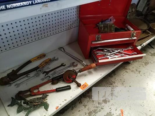 TOOLBOX WITH SPANNERS, BOLT CUTTERS, ETC