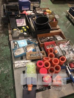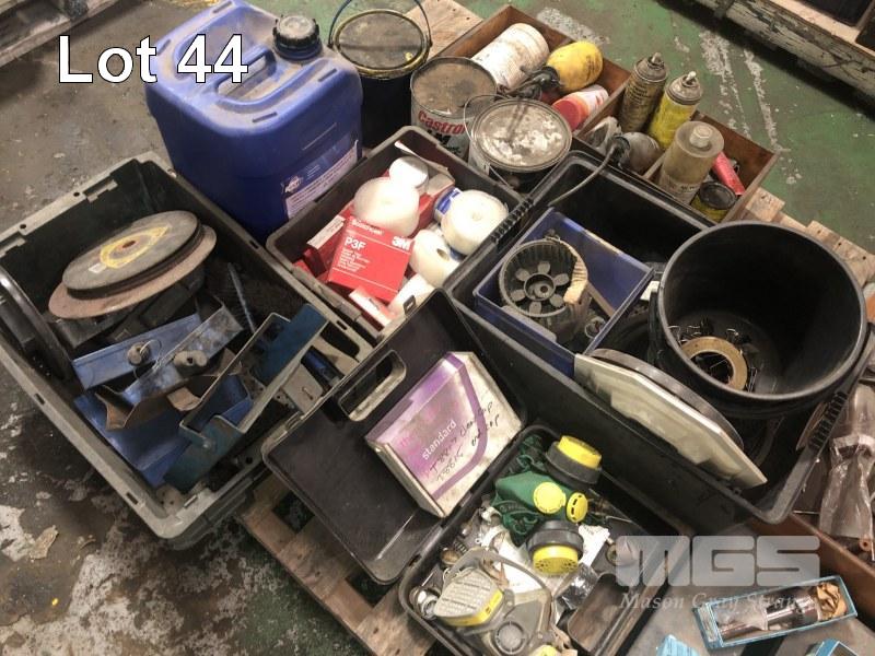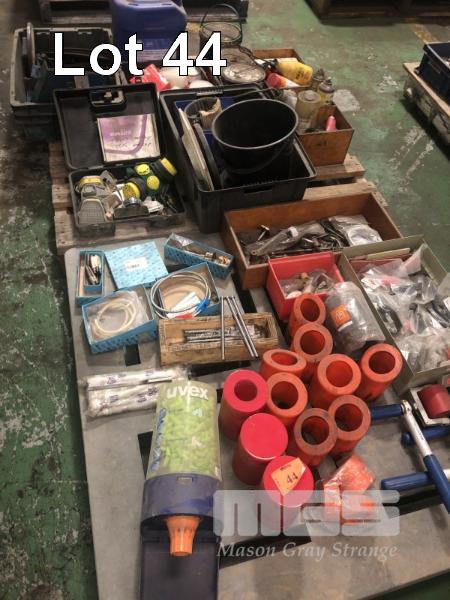 GREASE SPRAYS, NYLON FITTINGS, FACE MASKS, DUST PANS & BROOMS, EAR PLUG DISPENSER, NYLON ROLLERS, OVER CENTRE CLAMPS, CLOCKS, ETC,
