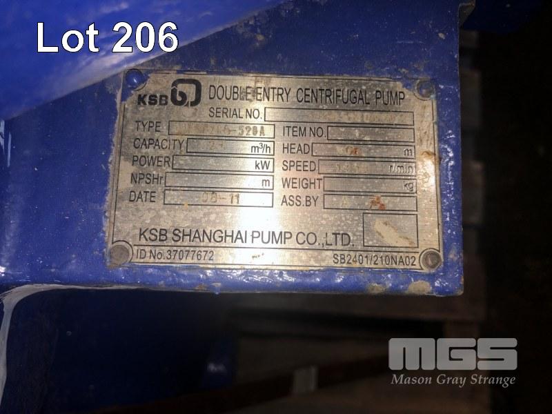 KSB FIREFIGHTING PUMP, MODEL OMEGA 200-520A, SERIAL 390051308002, 828 CUBIC METERS PER HOUR, DOM 08/11, 241kw @ 1450rmp, H90mlc, 1207 HOURS, 250 x 200mm