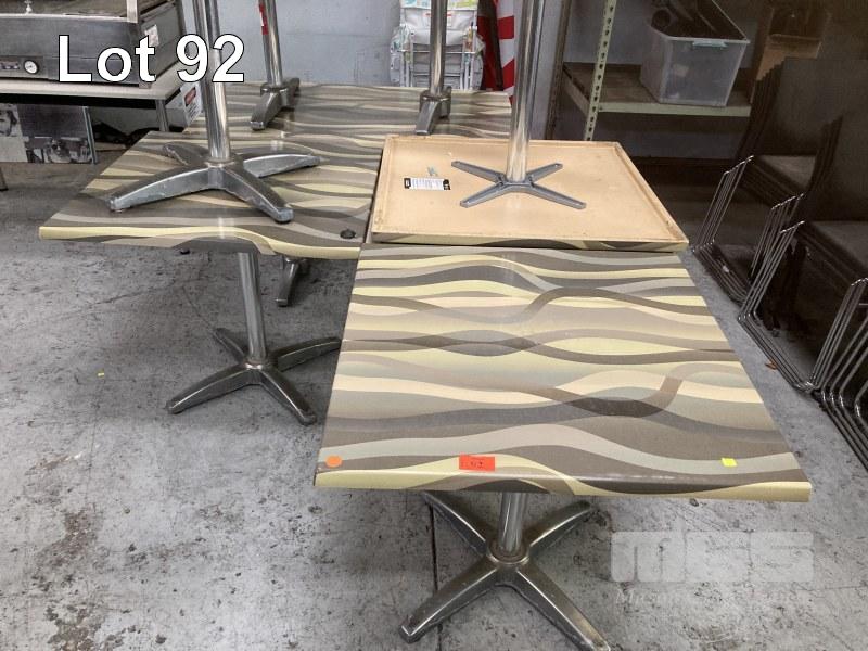 7 x CAFE TABLES, 5 @ 80 x 80cm & 2 @ 120 x 80cm, MOULDED TOP