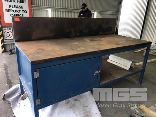 H/D PLATE STEEL COVERED BENCH, TUBE STEEL FRAME WITH BACK BOARD AND CUPBAORD, 2400 x 1000mm