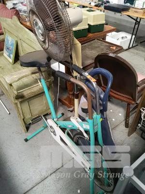 RED MOBILITY WALKER, SHOPPING TROLLEY, PEDESTAL FAN & EXERCISE BIKE
