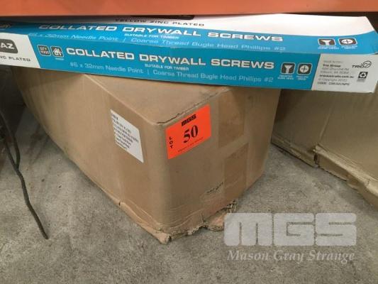 10,000 x DRY WALL SCREWS, COLLATED #6 x 32mm NEEDLE POINT, PHILIPS HEAD, ZINC PLATE