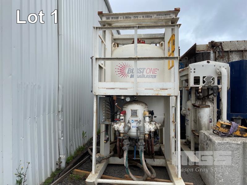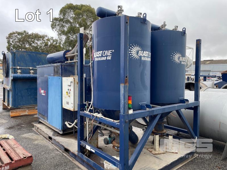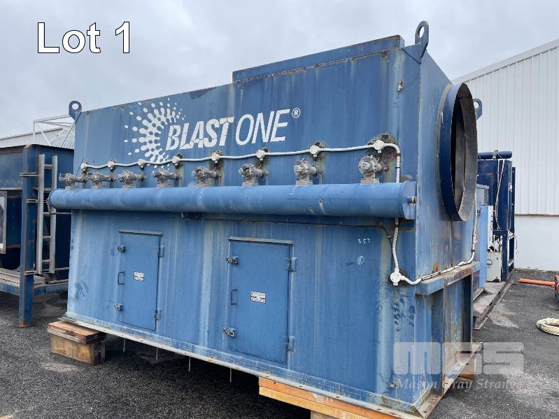 EX DEFENCE BLASTING AND RECOVERY SYSTEM, COMPRISING, BLAST ONE MEGA BLAST POT, BLAST ONE SEPARATOR, BLASTMASTER AIR PREP DRYER, 2 x PRO BLAST FILTER CHAMBERS & 2 x DUAL CHAMBER HOPPERS, BLAST ONE VACUUM RECOVERY (VACU LOAD 6), 4 x COLUMN FILTERS, 2 x CHICAGO CENTRI BLOWERS, 3 x FANTECH VENTILATION FANS AND DAMPERS, POSITIVE & RECOVERY DUCT WORK AND FRAMES