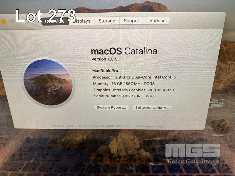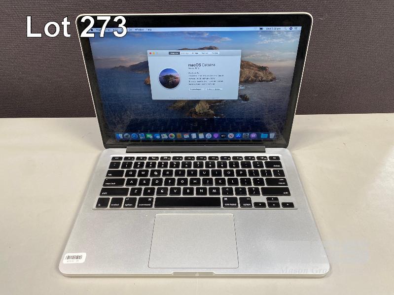LAPTOP, APPLE MACBOOK PRO (A1502), CORE i5 5287U (5TH GEN) @ 2.9GHz, 16GB DDR3 RAM, 1TB SSD, 13.3" RETINA WIDESCREEN (2560x1600), INTEL IRIS GRAPHICS, Wi-Fi, MAC OS 10.15 INSTALLED (NO POWER SUPPLY) (NOTE: MAJOR MARKS ON SCREEN) S/N:C02PT3RHFVH8