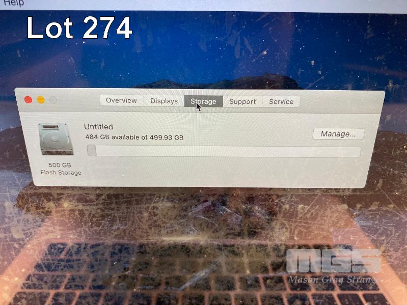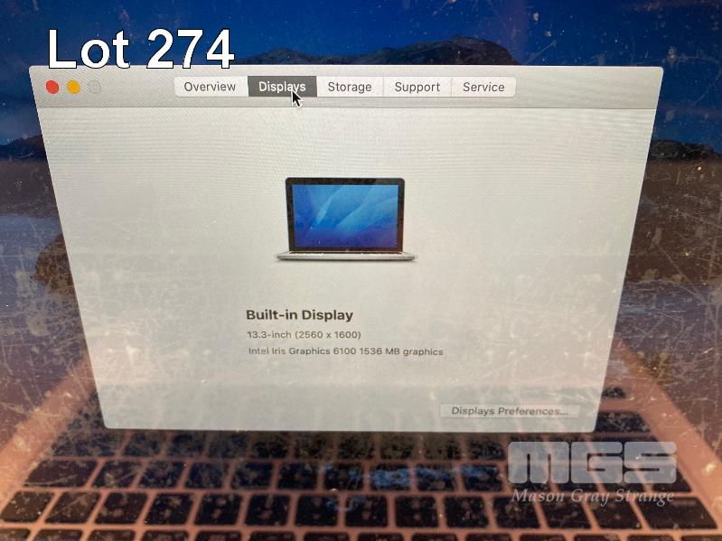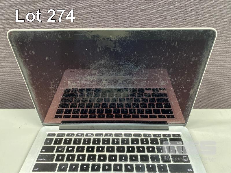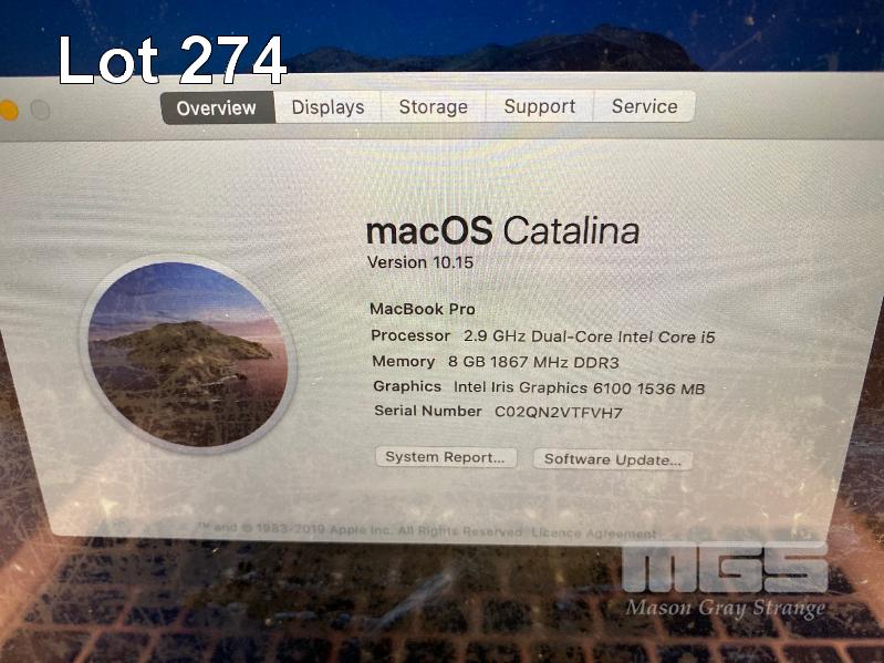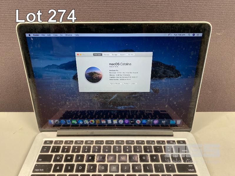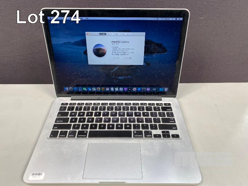 LAPTOP, APPLE MACBOOK PRO (A1502), CORE i5 5287U (5TH GEN) @ 2.9GHz, 8GB DDR3 RAM, 512GB SSD, 13.3" RETINA WIDESCREEN (2560x1600), INTEL IRIS GRAPHICS, Wi-Fi, MAC OS 10.15 INSTALLED (NO POWER SUPPLY) (NOTE: MAJOR MARKS ON SCREEN) S/N:C02QN2VTFVH7