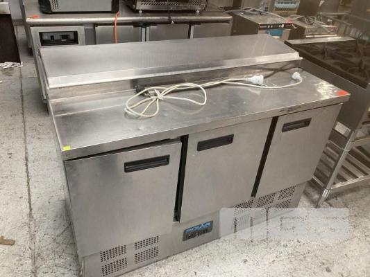 PREP FRIDGE, POLAR G605-A 3 DOOR, 140cm, STAINLESS STEEL CASED SELF CONTAINED UNIT, 240V