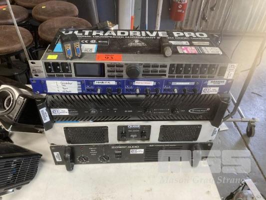 AUDIO EQUIP INCL: ULTRA DRIVE PRO DCX2496, SYNERGY SY2400, QUEST QA3004 & CREST AUDIO 6001