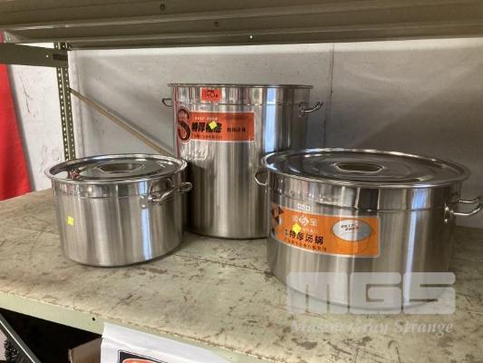 3 x STAINLESS STEEL STOCK POTS, 35 & 45cm