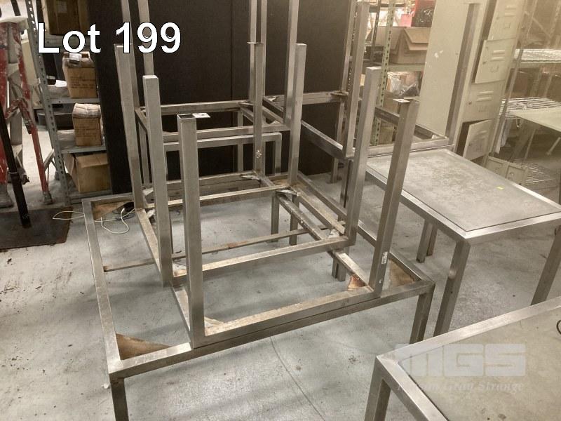 10 x ALFRESCO TABLES, COMPOSITE STONE INLAY, STAINLESS STEEL FRAME, ASSORTED SIZES