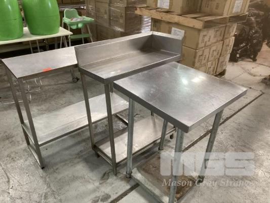 STAINLESS STEEL CORNER BENCH 80 x 40cm & 2 TIER OVERSHELF, 100 x 40cm, & INFILL BENCH