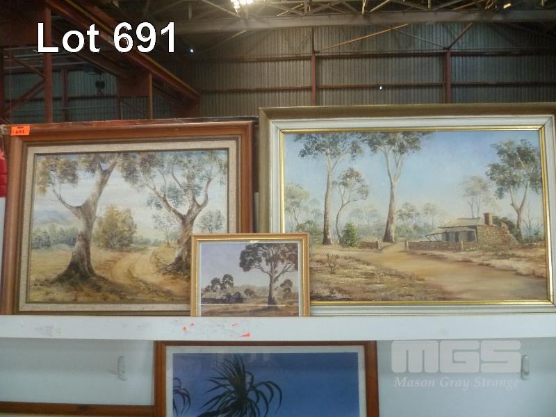 4 x PAINTINGS, OLD FARM HOMESTEADS & TREES