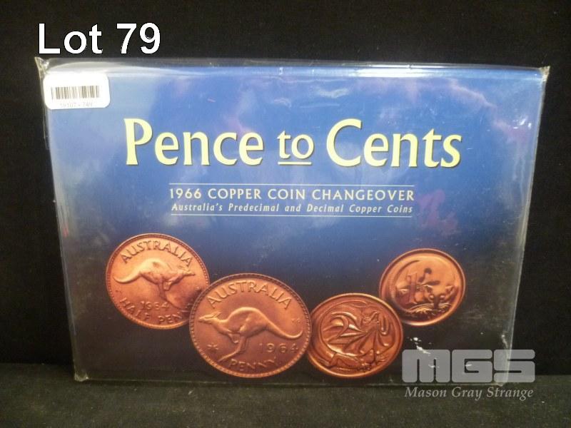 AUSTRALIAN PENCE TO CENT CHANGE OVER SET, 4 COIN SET IN FOLDER