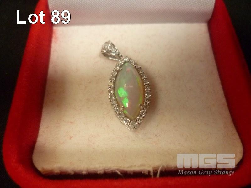 18ct GOLD DIAMOND AND OPAL PENDANT, 29 BEAD SET DIAMONDS, COME WITH VALUATION AT $4582