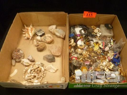 ASSORTED DRESS JEWELLERY, SEA SHELLS, MINERAL SPECIMENS, ETC