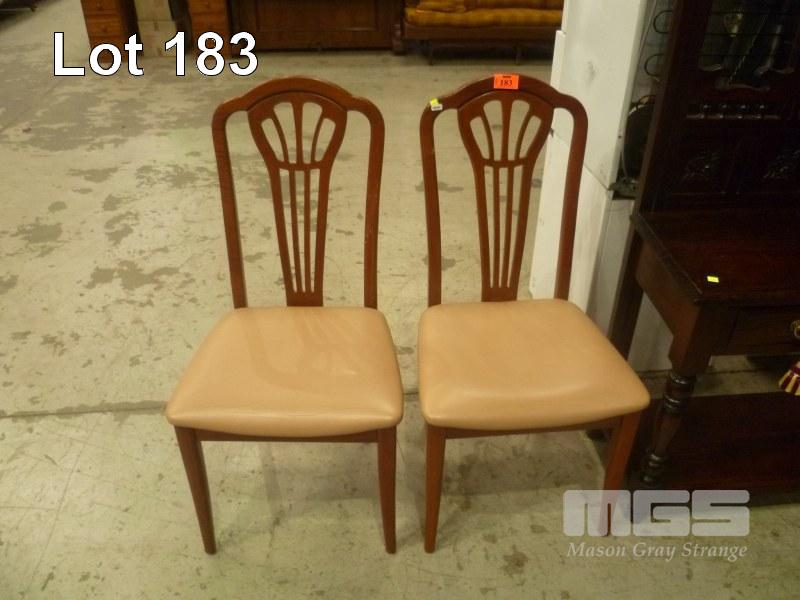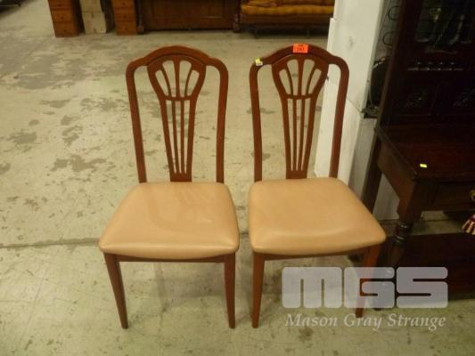 PAIR DINING CHAIRS, TIMBER FRAME, HIGH BACK, BEIGE VINYL