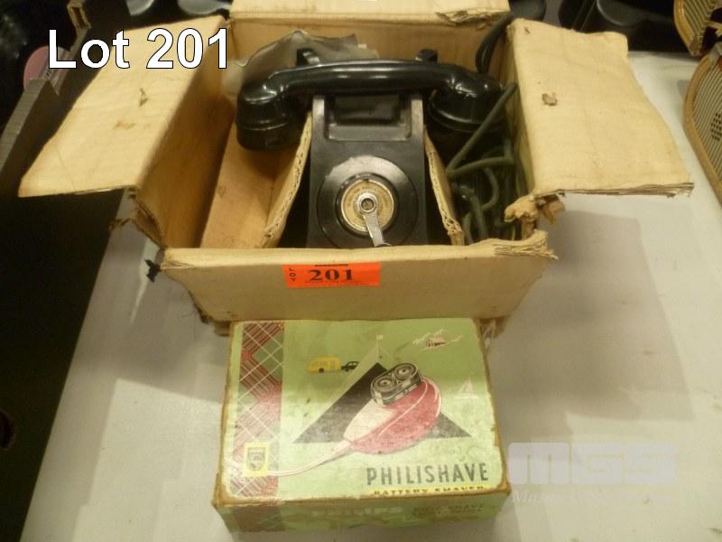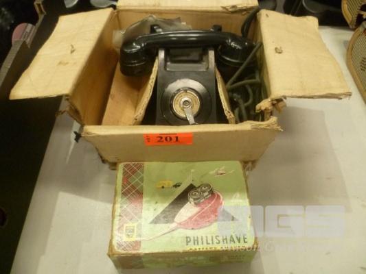 VINTAGE BLACK BAKELITE TELEPHONE & PHILIPS PHILISHAVE IN ORIGINAL BOXES