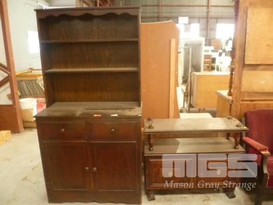 TIMBER VENEER KITCHEN CABINET, 2 x DRAWER/DOOR UNDERSTORAGE & WHATNOT WITH 2 DOOR UNDERSTORAGE