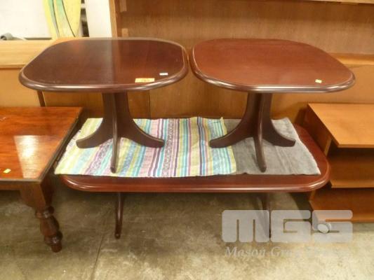TIMBER VENEER RECTANGULAR COFFEE TABLE WITH PAIR MATCHING SIDE TABLES
