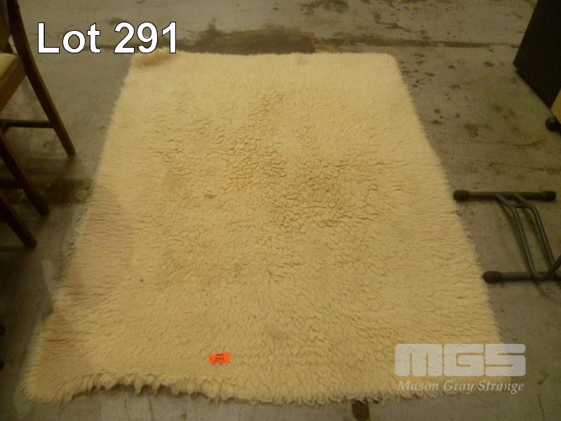 WHITE WOOL FLOOR RUG, 184 x 140cm