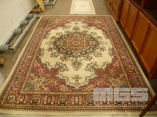 BEIGE/RED/BLUE PATTERN FLOOR RUG, 291 x 200cm