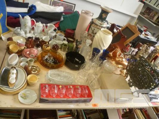 ASSORTED HOMEWARES INC VASES, CERAMICWARE, CRYSTAL, ETC, 1 x TABLE