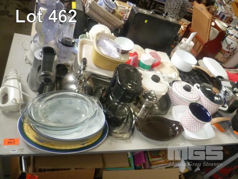 ASSORTED COOKWARE, APPLIANCES, ETC, 1 x TABLE