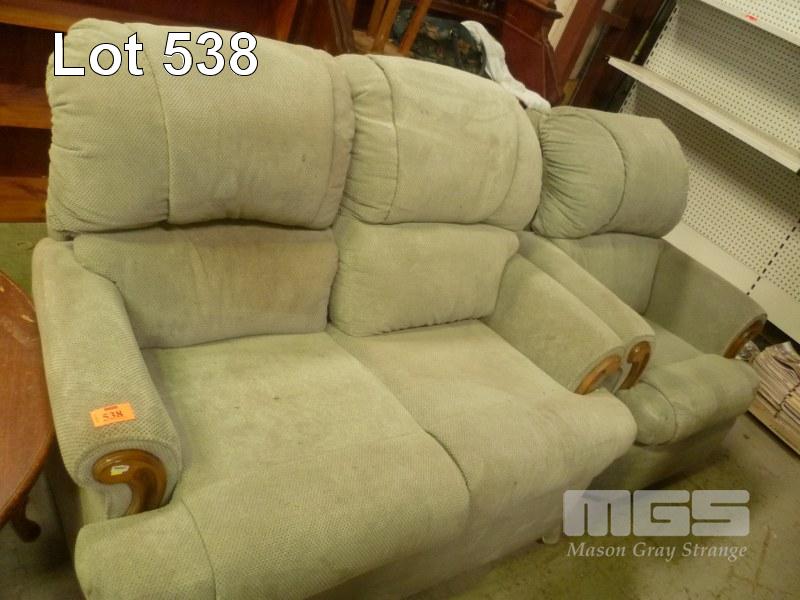 GREEN FABRIC 2 PIECE LOUNGE SUITE INC RECLINER & 2 SEATER