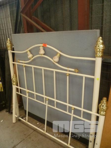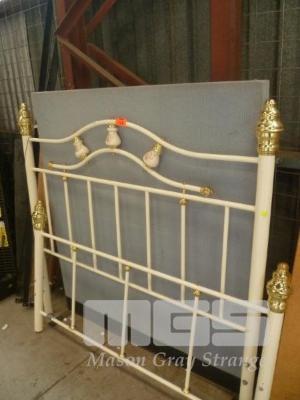 WHITE PAINTED METAL SINGLE BED FRAME, TIMBER SLAT
