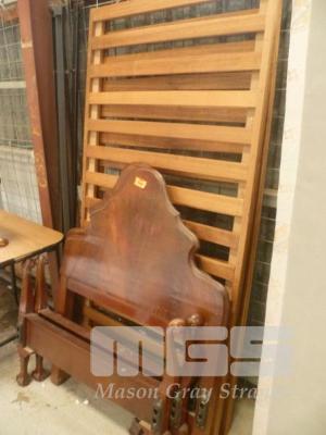 PAIR OF MID CENTURY SINGLE BEDS, TIMBER FRAME, TIMBER SLAT