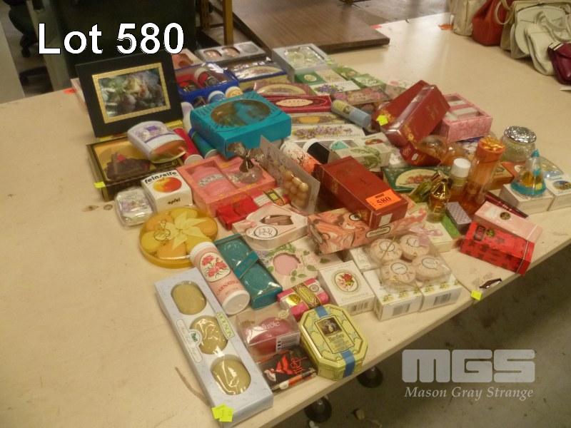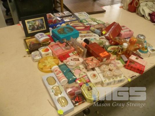 LARGE COLLECTION OF BATHROOM SOAPS, FRAGRANCES AND POWDERS. MOST OF THE STOCK IS VINTAGE.