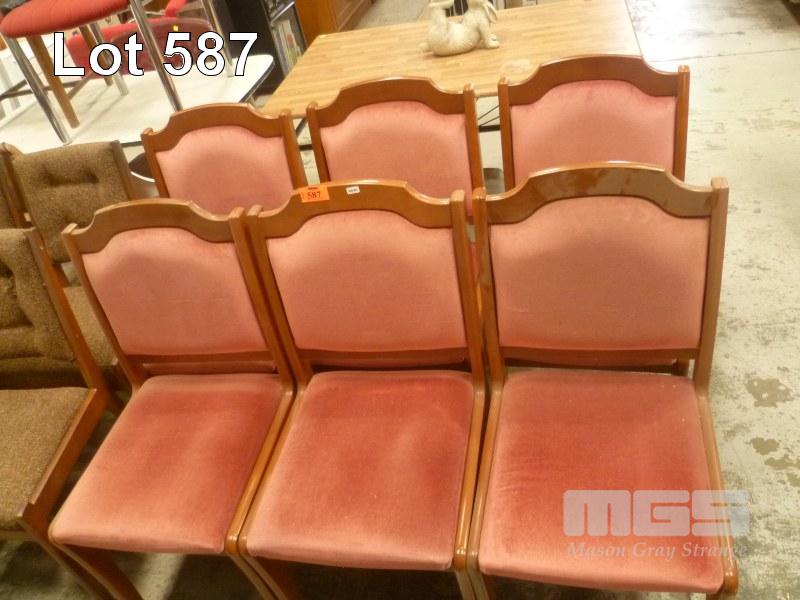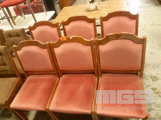 SET 6 DINING CHAIRS, TIMBER FRAME, PINK VELVET