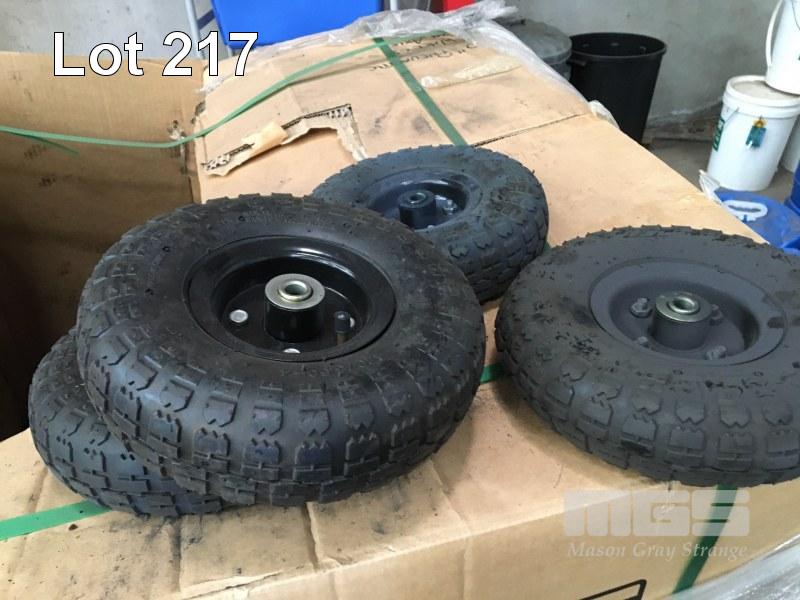 15 x PNEUMATIC WHEELS & RIMS, 10" NEW, FIT 12mm AXLE, 4.10/3.50-4, SUIT SACK TRUCK/AIR COMPRESSOR, ETC